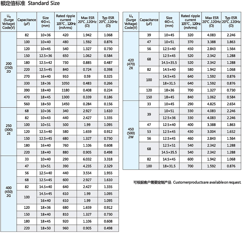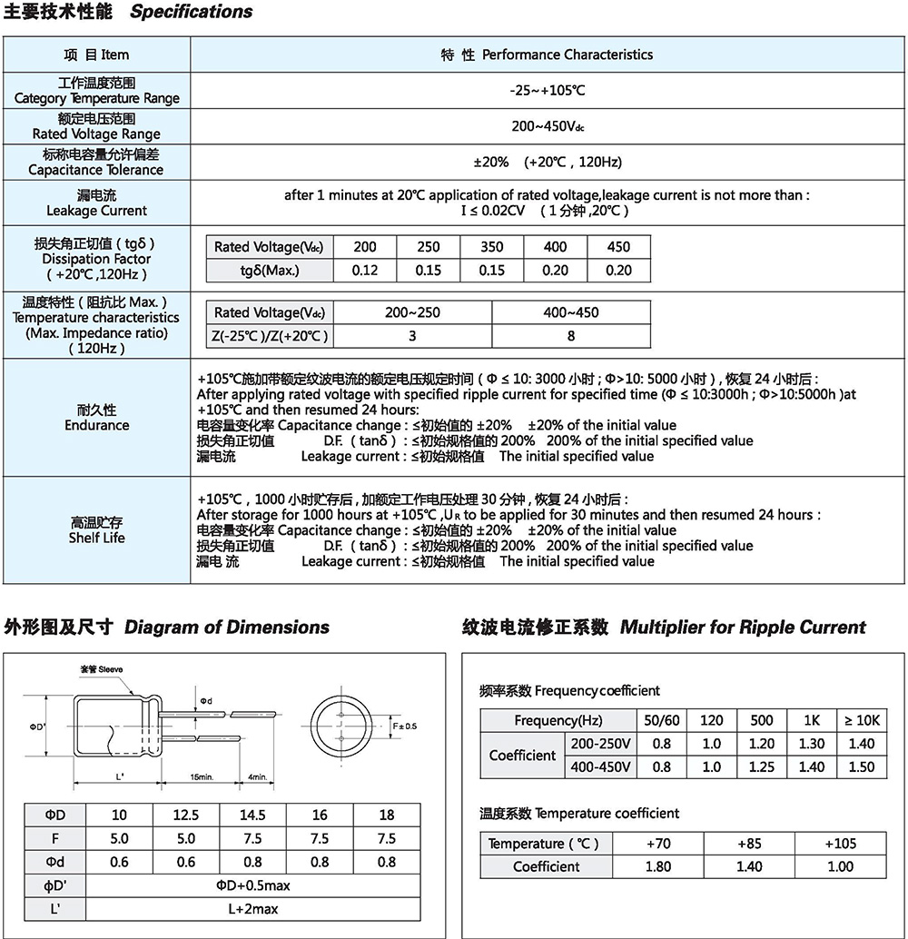 · 保证寿命:105℃ 3000~5000小时