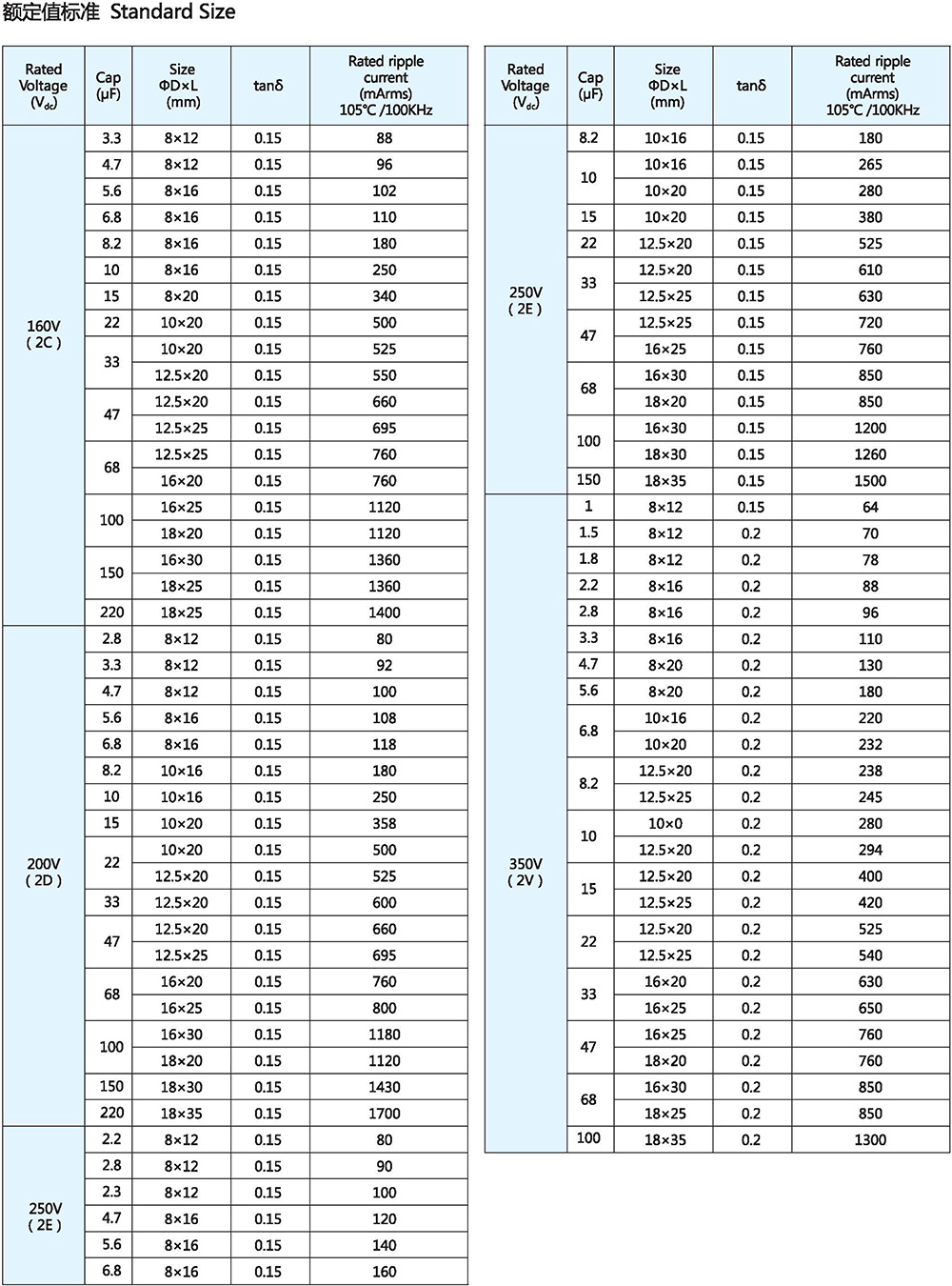 · 保证寿命:+130℃ 3000小时, 105℃ 12000小时 · 耐130℃高温,小体积,长寿命 · 符合RoHS
