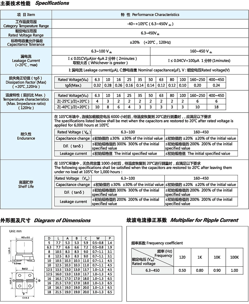 保证寿命:+105℃ 6000小时