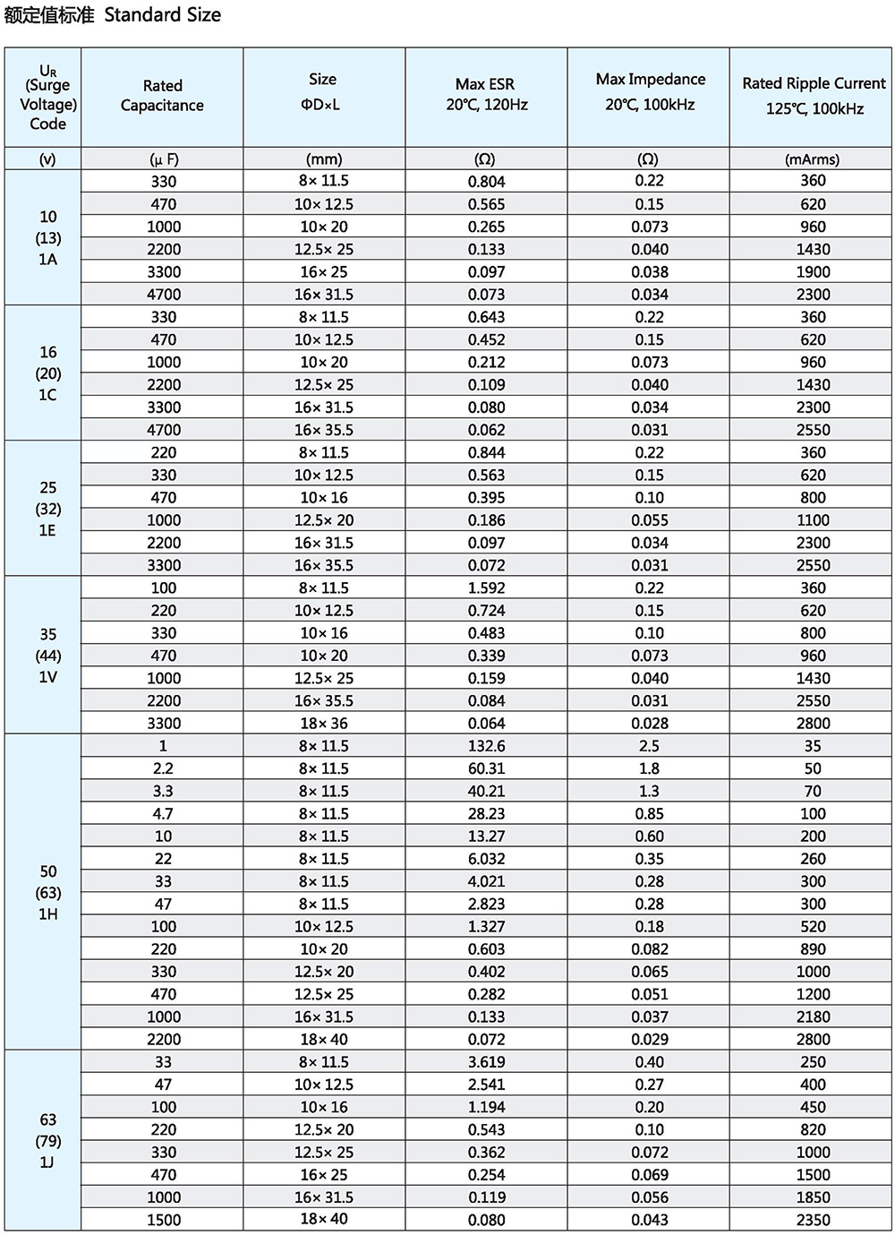 .Endurance: 2000~5000 hours at 125℃